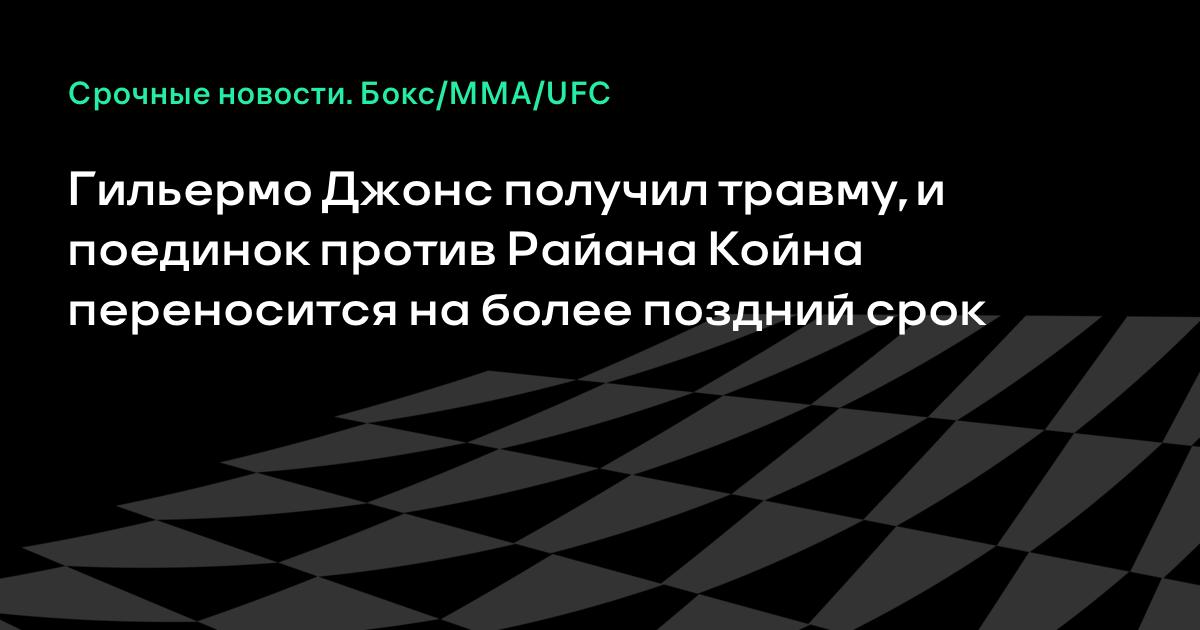 Гильермо Джонс получил травму, и поединок против Райана Койна переносится на более поздний срок