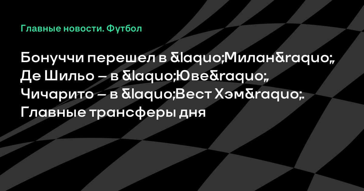 Бонуччи перешел в «Милан», Де Шильо – в «Юве», Чичарито – в «Вест Хэм». Главные трансферы дня