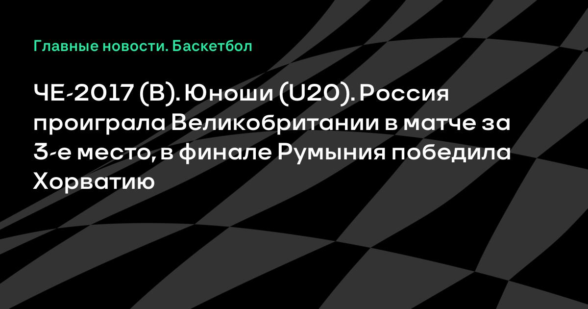 ЧЕ-2017 (B). Юноши (U20). Россия проиграла Великобритании в матче за 3-е место, в финале Румыния победила Хорватию