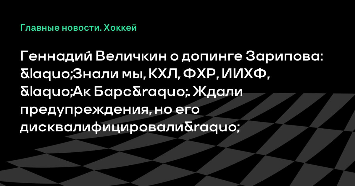 Геннадий Величкин о допинге Зарипова: «Знали мы, КХЛ, ФХР, ИИХФ, «Ак Барс». Ждали предупреждения, но его дисквалифицировали»