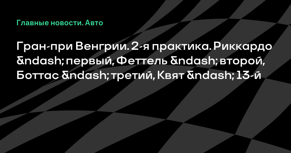 Гран-при Венгрии. 2-я практика. Риккардо – первый, Феттель – второй, Боттас – третий, Квят – 13-й