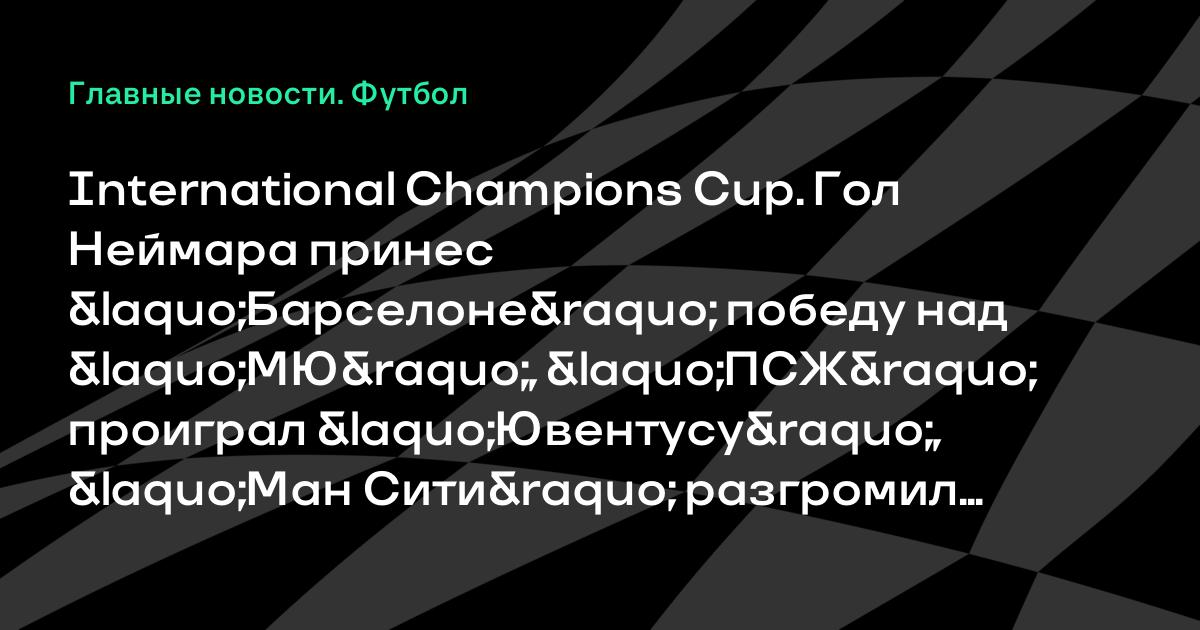 International Champions Cup. Гол Неймара принес «Барселоне» победу над «МЮ», «ПСЖ» проиграл «Ювентусу», «Ман Сити» разгромил «Реал»
