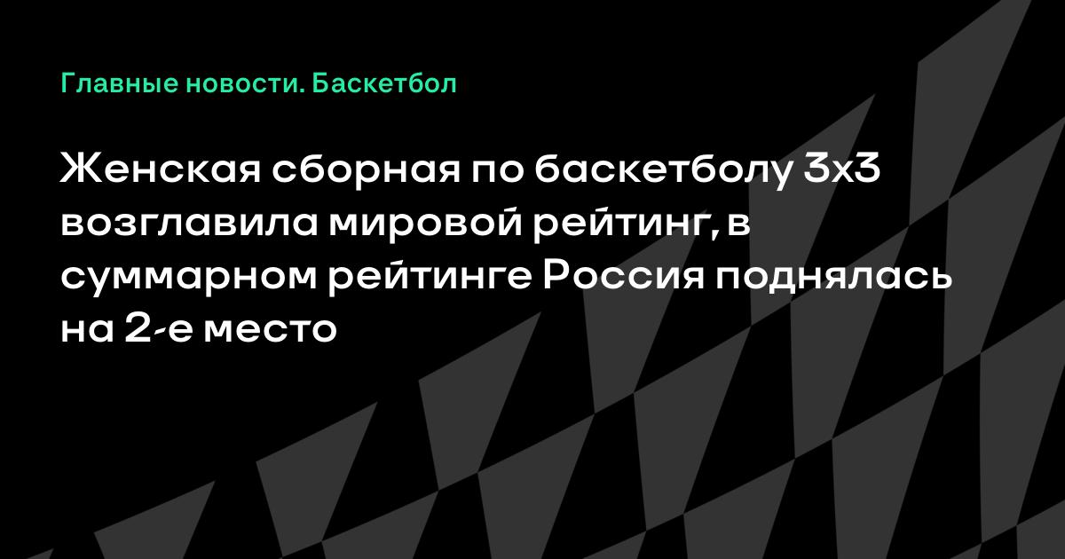 Женская сборная по баскетболу 3х3 возглавила мировой рейтинг, в суммарном рейтинге Россия поднялась на 2-е место