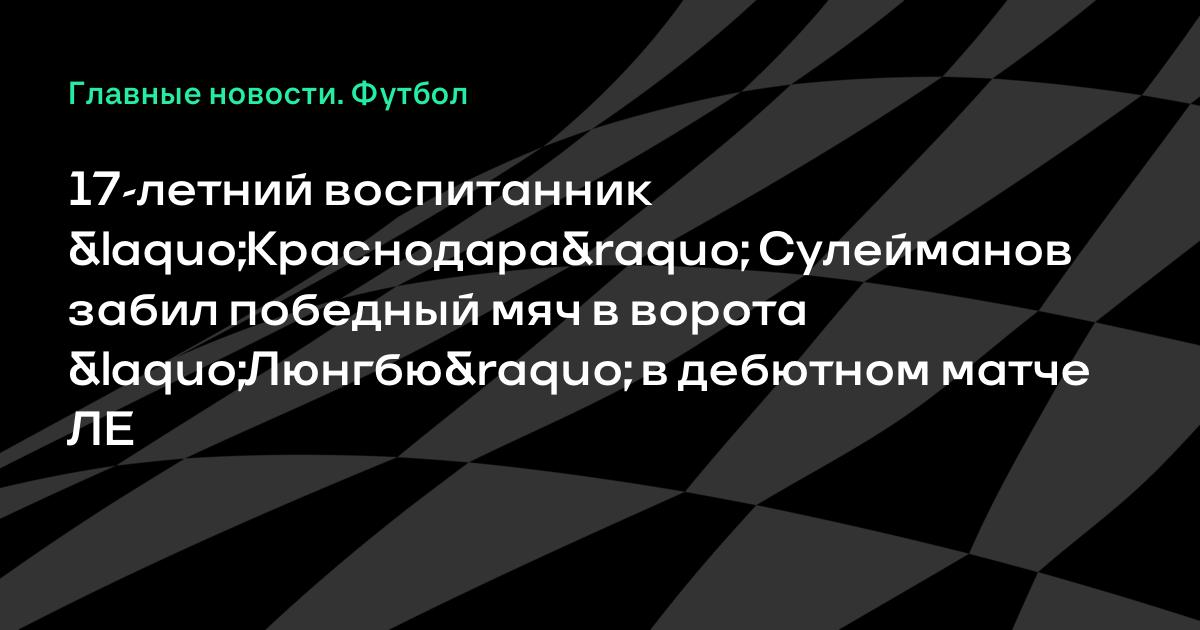 17-летний воспитанник «Краснодара» Сулейманов забил победный мяч в ворота «Люнгбю» в дебютном матче ЛЕ