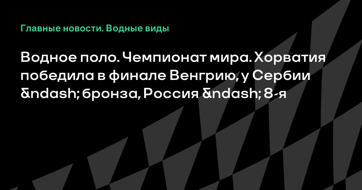 Сегодня на чемпионате мира в Будапеште прошли решающие матчи в мужском водном поло. Венгрия уступила в финале Хорватии (6:8), Сербия обыграла Грецию в матче за бронзу (11:8).