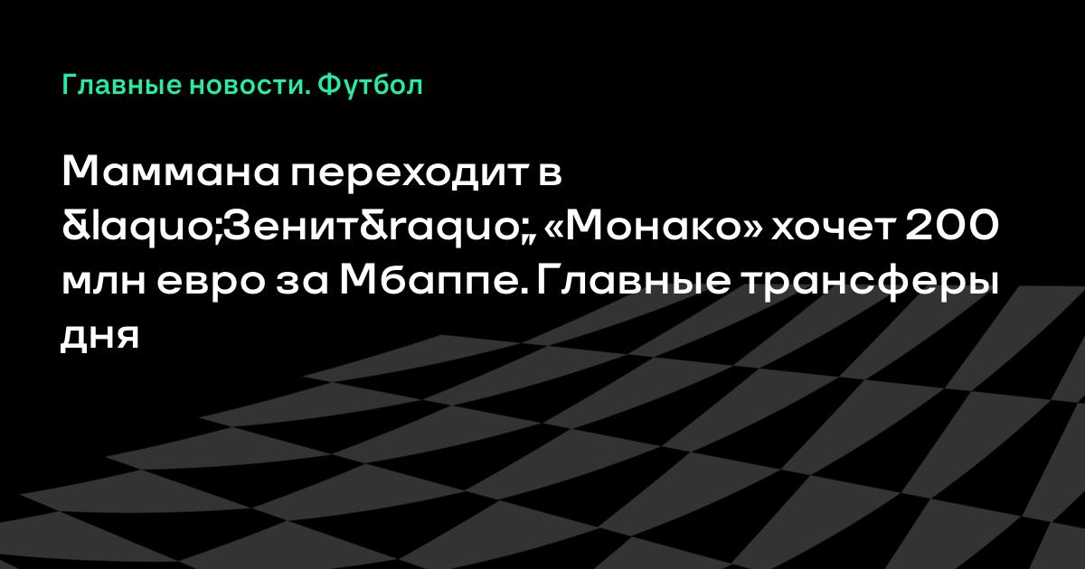 Маммана переходит в «Зенит», «Монако» хочет 200 млн евро за Мбаппе. Главные трансферы дня