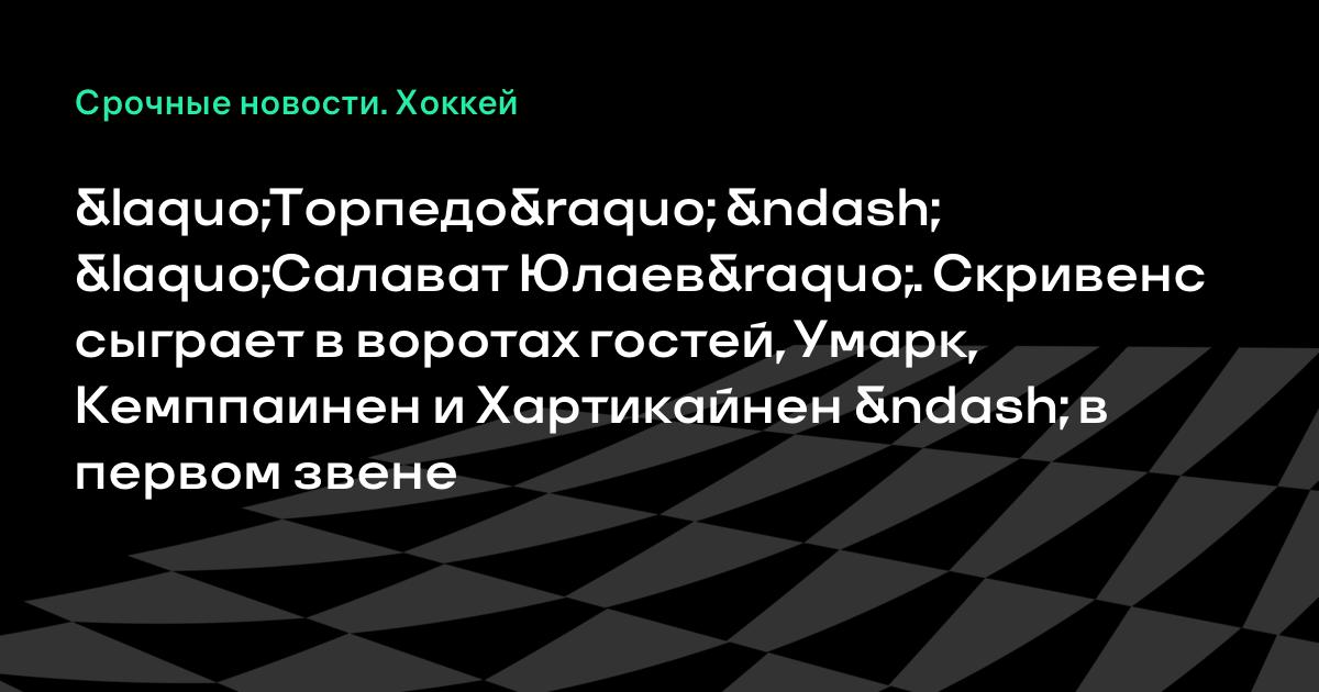 «Торпедо» – «Салават Юлаев». Скривенс сыграет в воротах гостей, Умарк, Кемппаинен и Хартикайнен – в первом звене