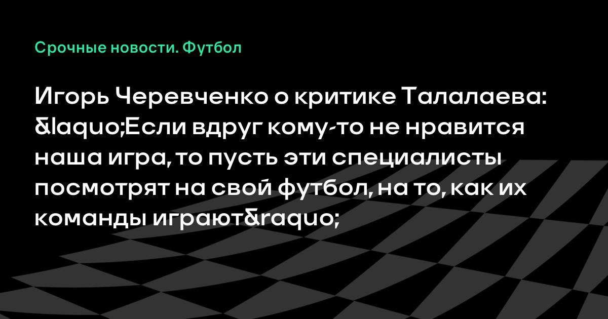 Игорь Черевченко о критике Талалаева: «Если вдруг кому-то не нравится наша игра, то пусть эти специалисты посмотрят на свой футбол, на то, как их команды играют»