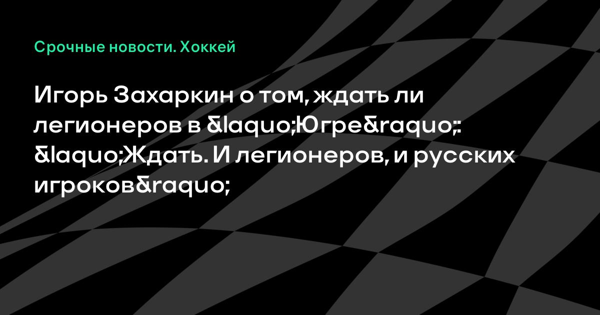 Игорь Захаркин о том, ждать ли легионеров в «Югре»: «Ждать. И легионеров, и русских игроков»