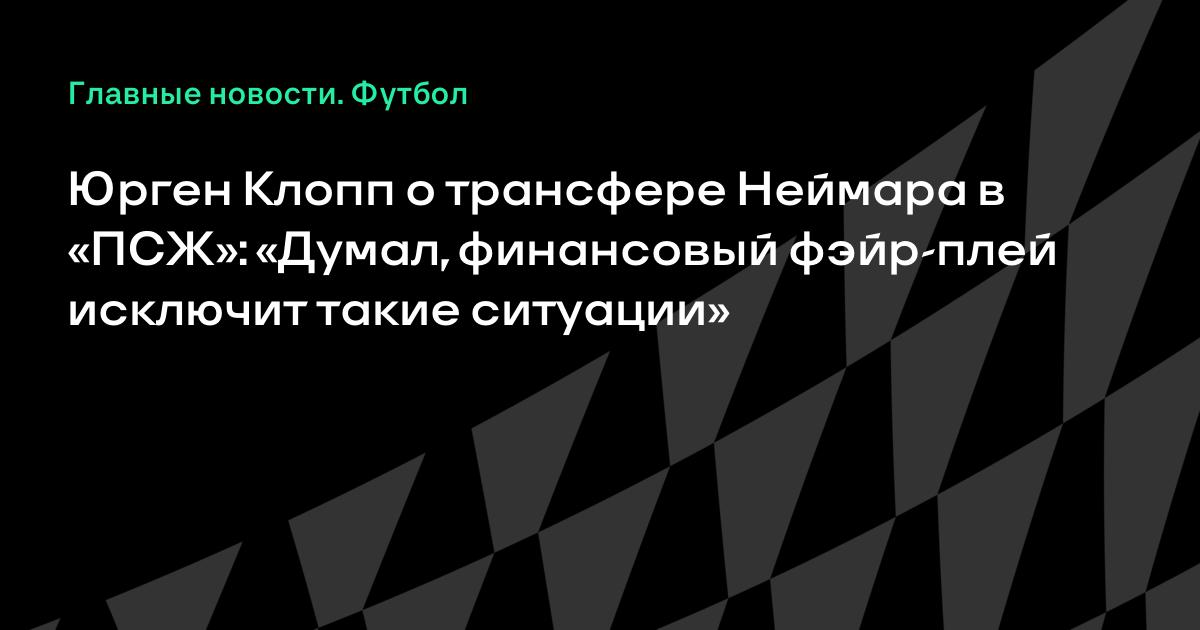 Юрген Клопп о трансфере Неймара в «ПСЖ»: «Думал, финансовый фэйр-плей исключит такие ситуации»