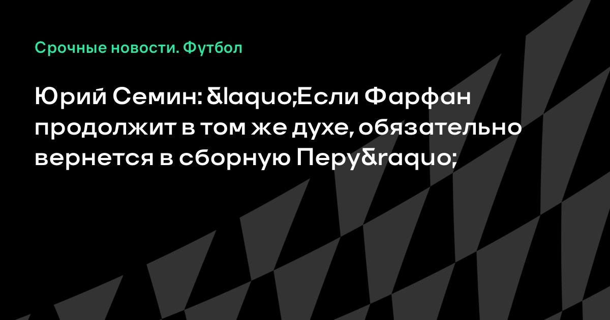 – Могу сказать только самые приятные слова. Фарфан – трудолюбивый профессионал. Он долго не играл до перехода в «Локомотив», но смог набрать форму. Если Фарфан продолжит в том же духе, обязательно вернется в сборную Перу, – сказал Семин.