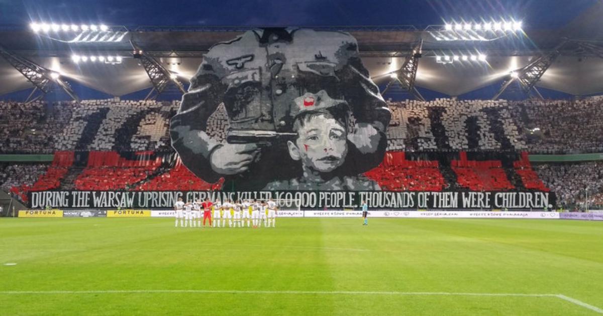 Болельщики хозяев вывесили огромный баннер в память о Варшавском восстании (1 августа – 2 октября 1944 года), когда немцы убили 160 тысяч человек.