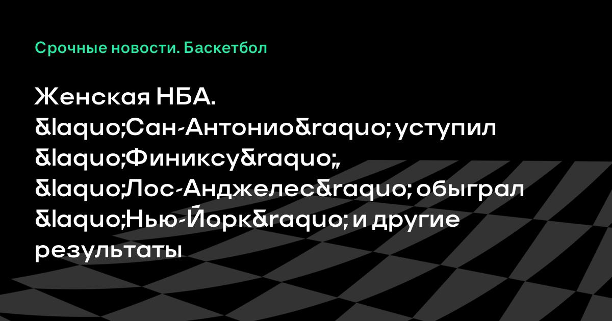 Женская НБА. «Сан-Антонио» уступил «Финиксу», «Лос-Анджелес» обыграл «Нью-Йорк» и другие результаты