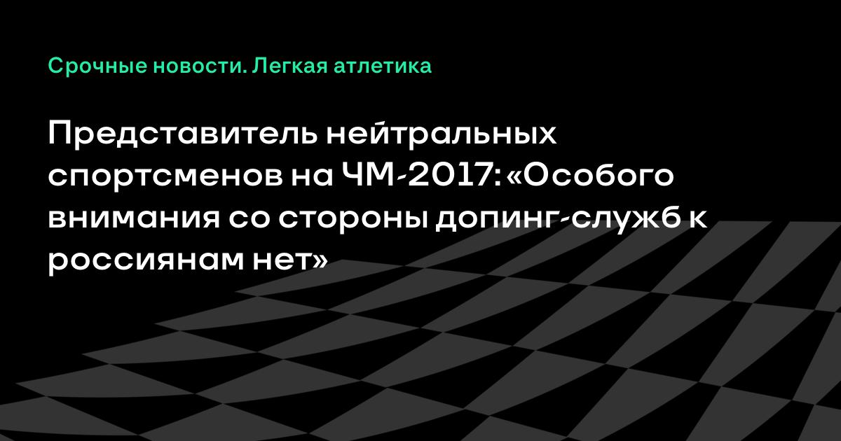 Представитель нейтральных спортсменов на ЧМ-2017: «Особого внимания со стороны допинг-служб к россиянам нет»
