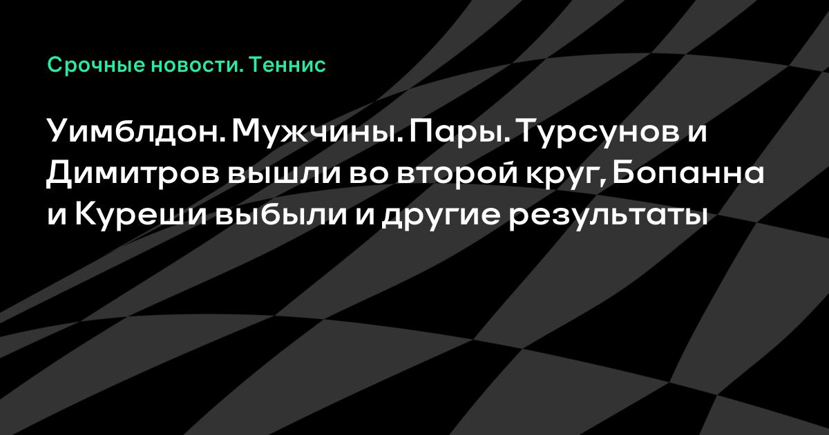 Уимблдон. Мужчины. Пары. Турсунов и Димитров вышли во второй круг, Бопанна и Куреши выбыли и другие результаты