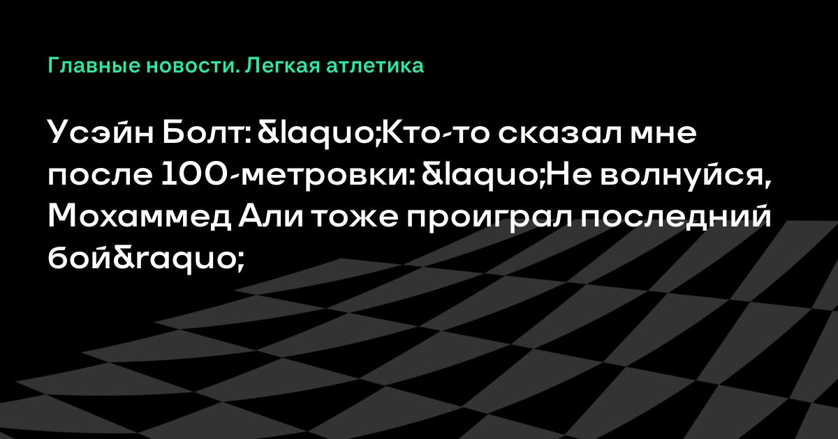 Усэйн Болт: «Кто-то сказал мне после 100-метровки: «Не волнуйся, Мохаммед Али тоже проиграл последний бой»