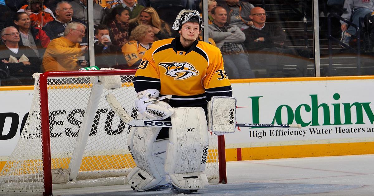 Всего в НХЛ на его счету 31 матч, в которых он одержал 8 побед и отразил 89,5 процента бросков.