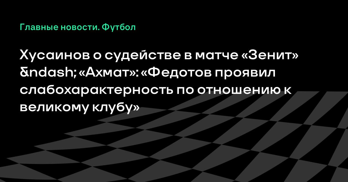 Хусаинов о судействе в матче «Зенит» – «Ахмат»: «Федотов проявил слабохарактерность по отношению к великому клубу»