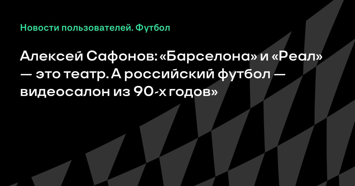 Алексей Сафонов: «Барселона» и «Реал» — это театр. А российский футбол — видеосалон из 90-х годов»