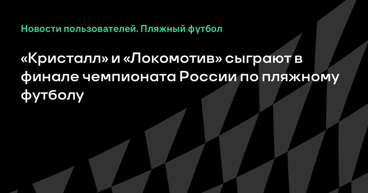 «Кристалл» и «Локомотив» сыграют в финале чемпионата России по пляжному футболу. Это стало известно по окончании вторых матчей полуфинальных серий. «Кристалл» вновь оказался сильнее московского «Спартака», выиграв со счётом 4:2. В составе красно-белых дубль оформил Алексей Павленко. Победный гол «Кристалла» забил Кирилл Романов.