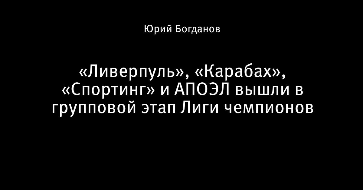 «Ливерпуль», «Карабах», «Спортинг» и АПОЭЛ вышли в групповой этап Лиги чемпионов