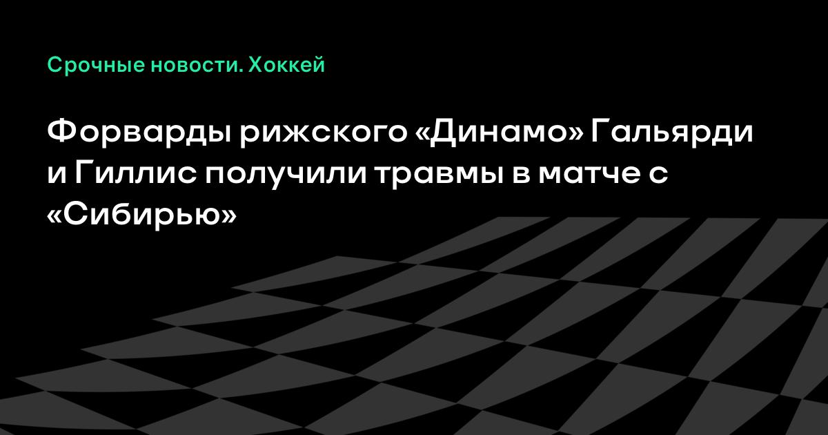 Нападающие рижского «Динамо» Колтон Гиллис и Ти Джей Гальярди получили травмы в матче регулярного чемпионата КХЛ с «Сибирью» (1:2).