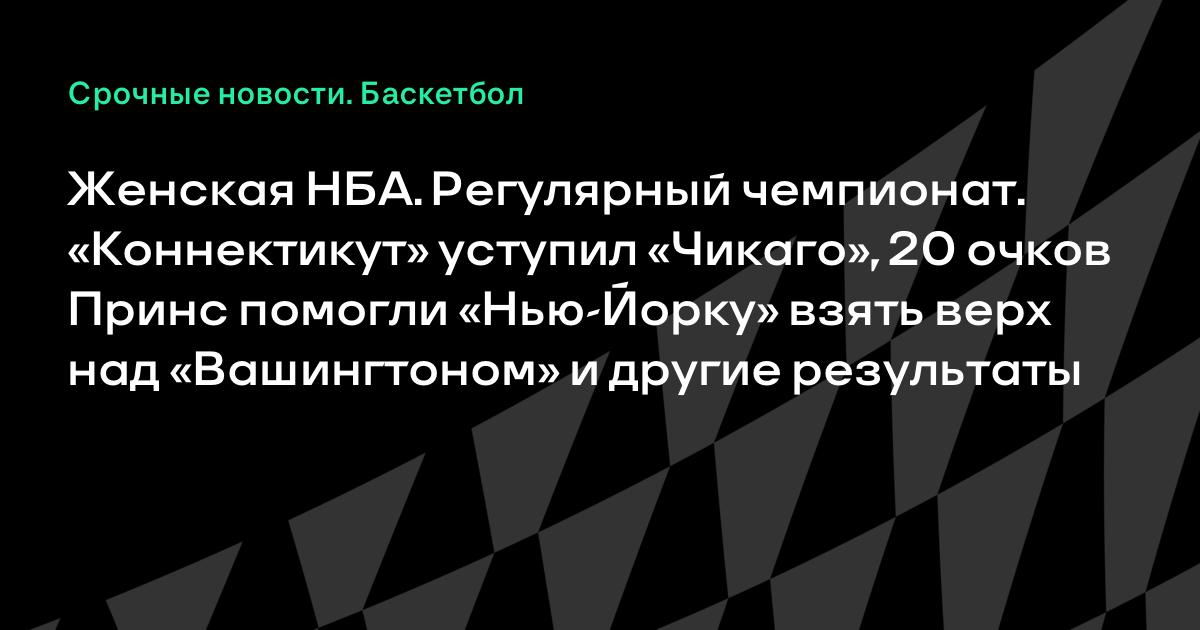 Женская НБА. Регулярный чемпионат. «Коннектикут» уступил «Чикаго», 20 очков Принс помогли «Нью-Йорку» взять верх над «Вашингтоном» и другие результаты