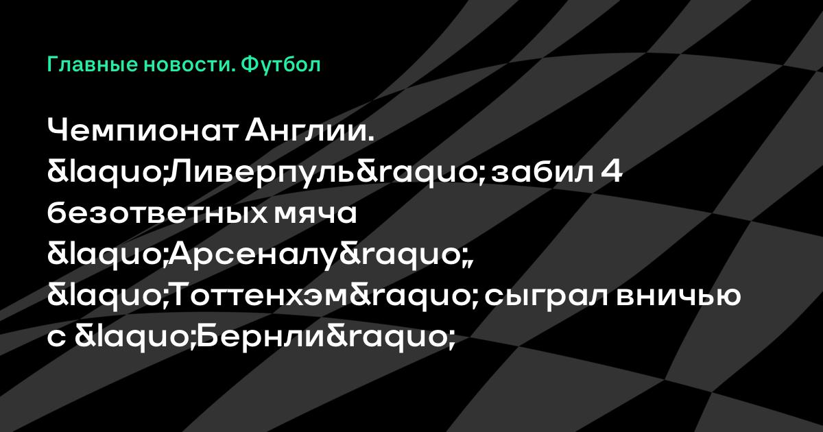 Чемпионат Англии. «Ливерпуль» забил 4 безответных мяча «Арсеналу», «Тоттенхэм» сыграл вничью с «Бернли»