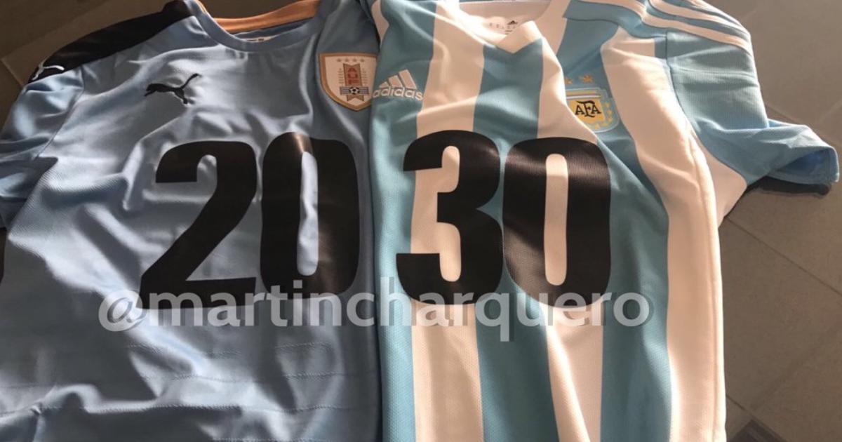 Оба футболиста с подачи президента Федерации футбола Уругвая Вильмара Вальдеса наденут футболки, образующие цифру 2030.