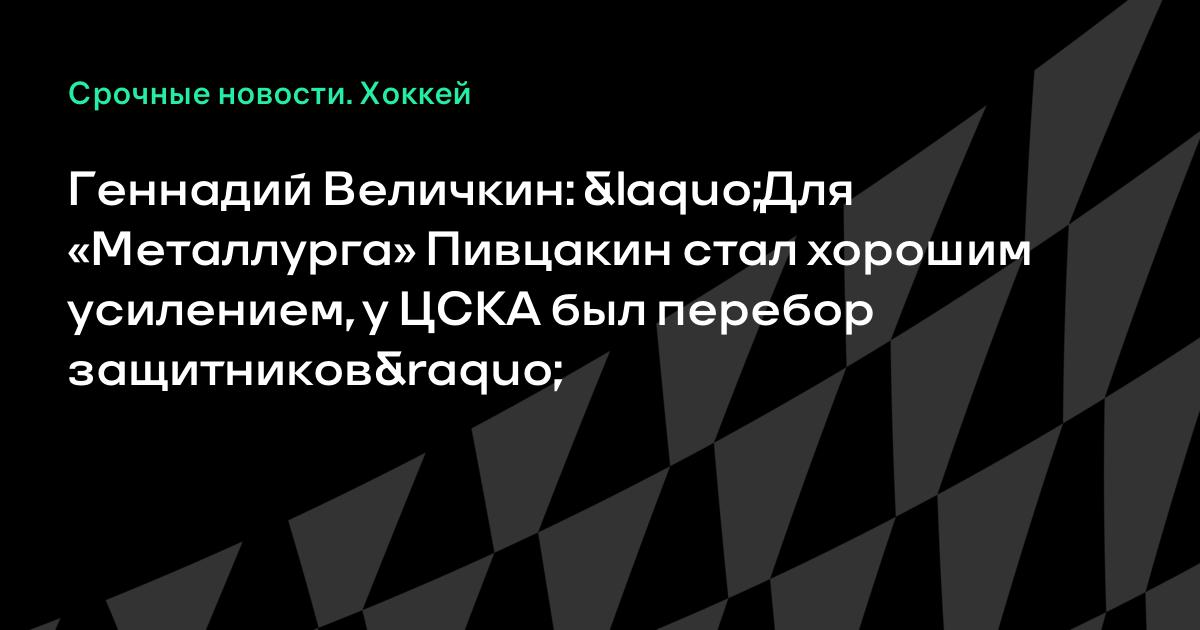 Геннадий Величкин: «Для «Металлурга» Пивцакин стал хорошим усилением, у ЦСКА был перебор защитников»