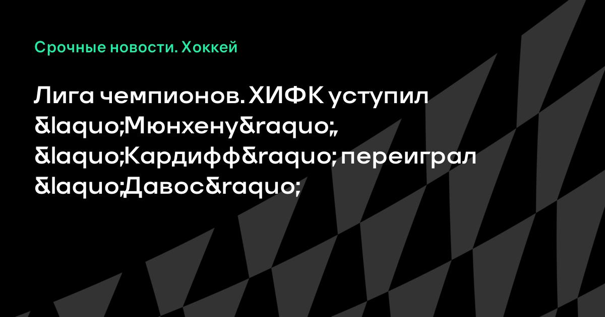 Лига чемпионов. ХИФК уступил «Мюнхену», «Кардифф» переиграл «Давос»