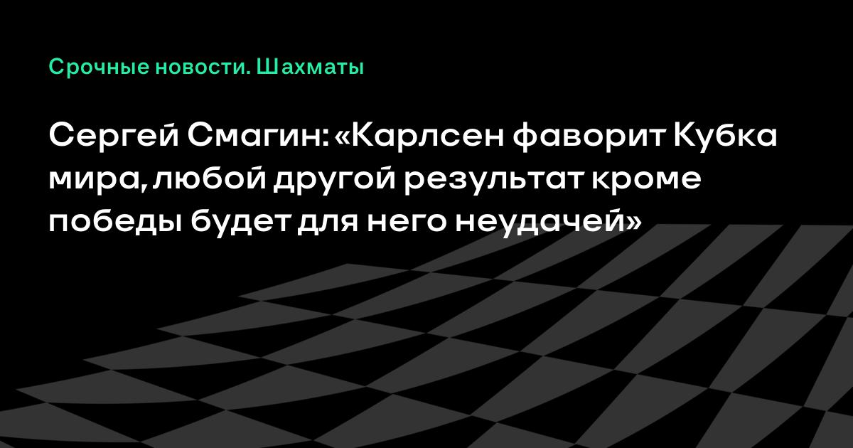 Сергей Смагин: «Карлсен фаворит Кубка мира, любой другой результат кроме победы будет для него неудачей»