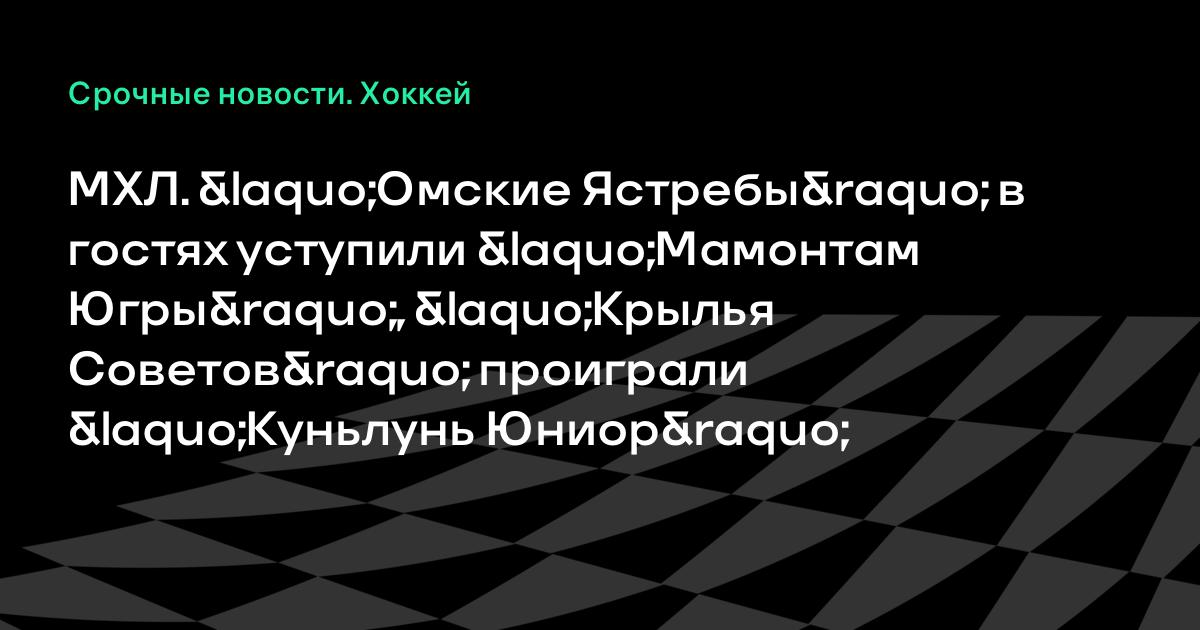 МХЛ. «Омские Ястребы» в гостях уступили «Мамонтам Югры», «Крылья Советов» проиграли «Куньлунь Юниор»