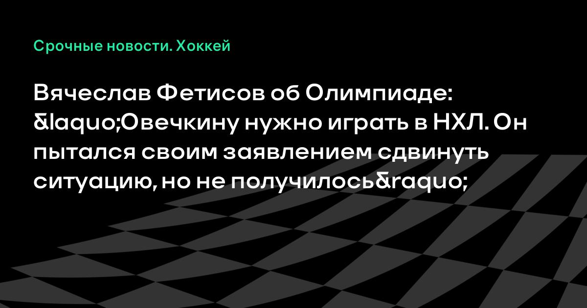Вячеслав Фетисов об Олимпиаде: «Овечкину нужно играть в НХЛ. Он пытался своим заявлением сдвинуть ситуацию, но не получилось»