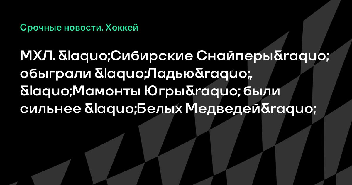 МХЛ. «Сибирские Снайперы» обыграли «Ладью», «Мамонты Югры» были сильнее «Белых Медведей»