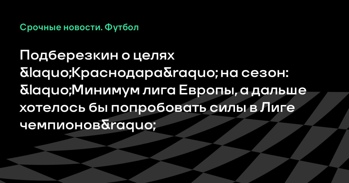 Подберезкин о целях «Краснодара» на сезон: «Минимум лига Европы, а дальше хотелось бы попробовать силы в Лиге чемпионов»