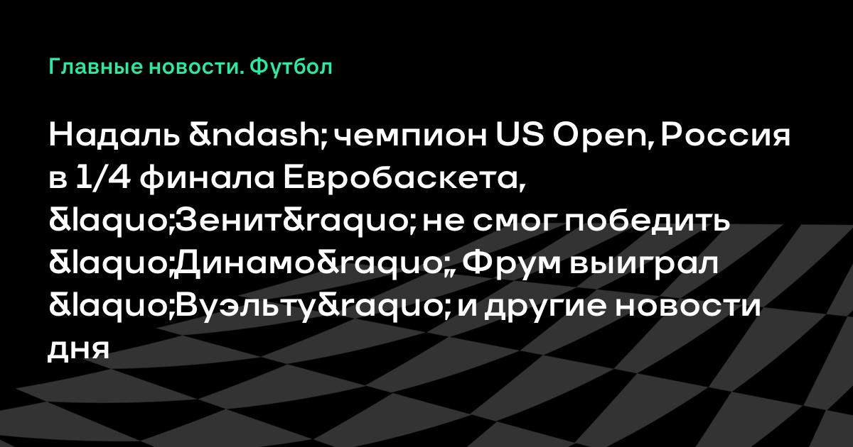 Надаль – чемпион US Open, Россия в 1/4 финала Евробаскета, «Зенит» не смог победить «Динамо», Фрум выиграл «Вуэльту» и другие новости дня