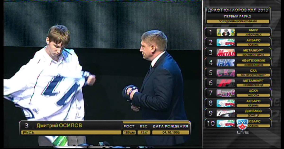 Примечательно, что Осипов является первым номером драфта КХЛ-2013 («Амур»).