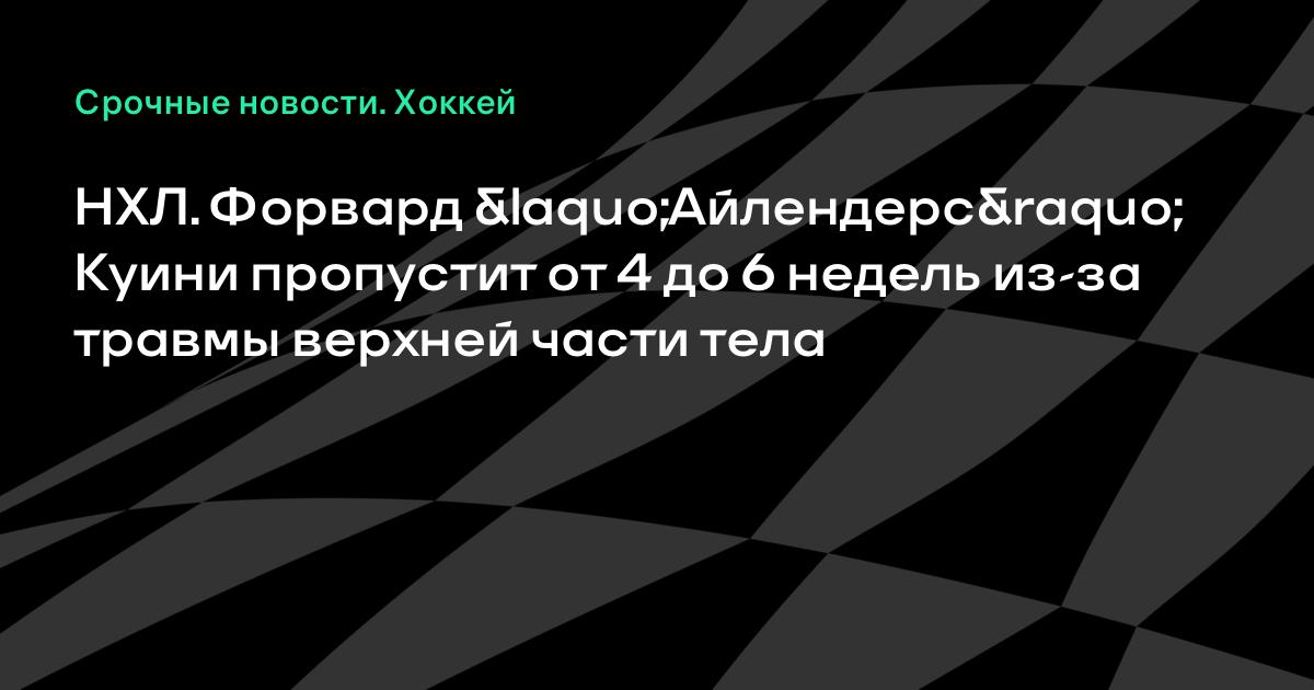 Форвард «Айлендерс» Алан Куини пропустит от 4 до 6 недель в связи с травмой верхней части тела, сообщает официальный сайт клуба.