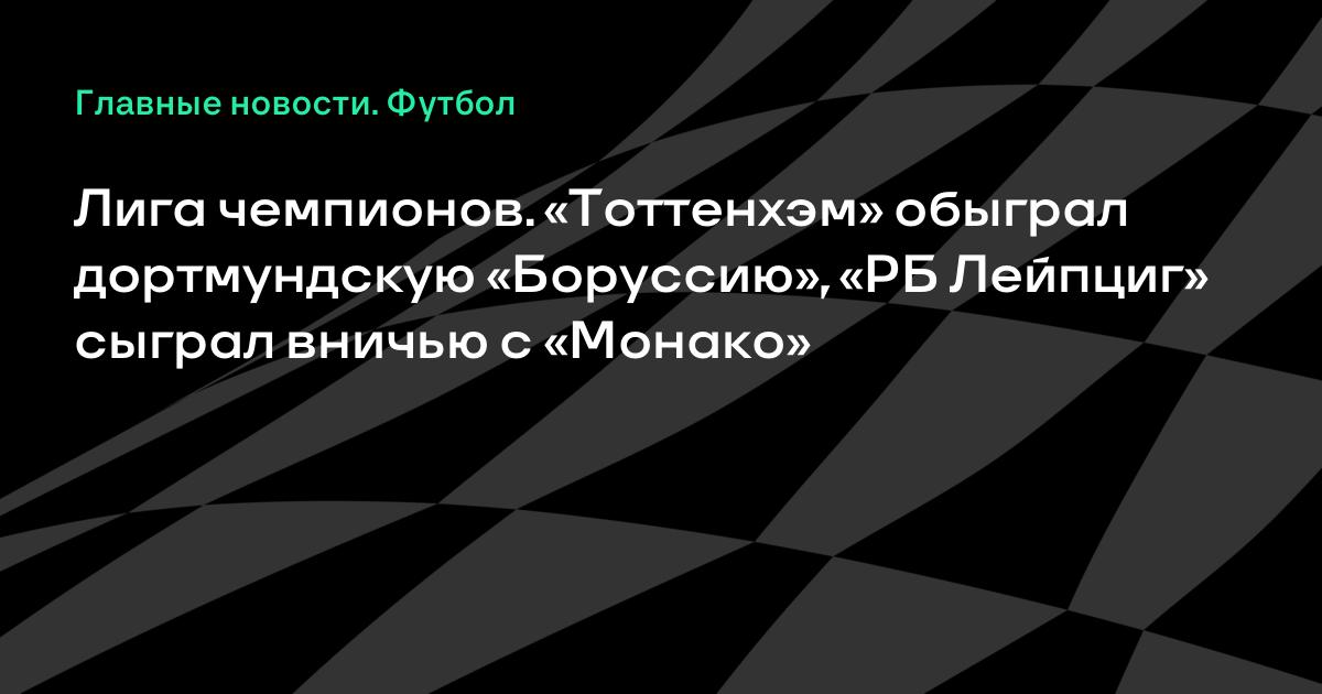 Лига чемпионов. «Тоттенхэм» обыграл дортмундскую «Боруссию», «РБ Лейпциг» сыграл вничью с «Монако»