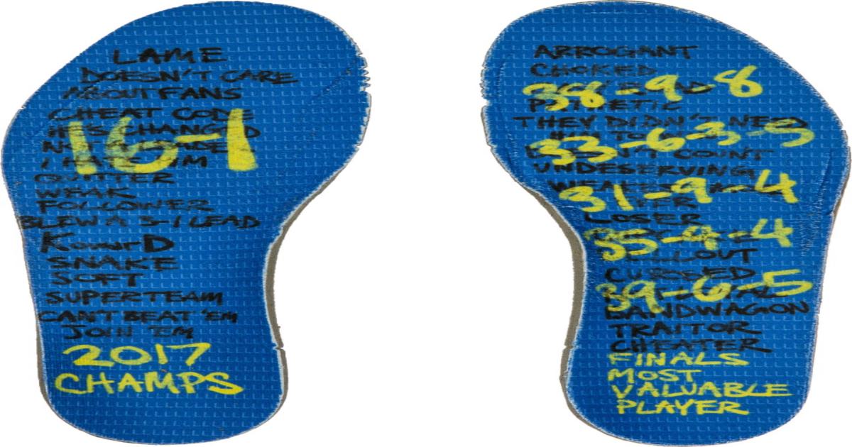На стельках кроссовок приведены многочисленные уничижительные эпитеты, которые были адресованы Дюрэнту после перехода из «Тандер» в «Уорриорз» («предатель», «читер», «слабак», «трус»).