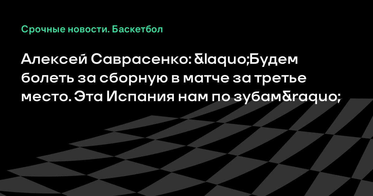 Будем болеть за нашу сборную в матче за третье место. Если мы выиграем бронзовые медали, это будет отличным результатом для нас. Эта сборная Испании по зубам нам. Нам любая сборная по зубам. Главное – верить в собственные силы», – цитирует Саврасенко «Р-Спорт».