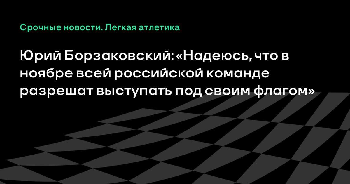 «Очень надеюсь, что в ноябре Международная ассоциация легкоатлетических федераций (IAAF) рассмотрит нашу ситуацию, она решится в нашу пользу и нас допустят выступать под российским флагом – всю команду», – сказал Борзаковский.