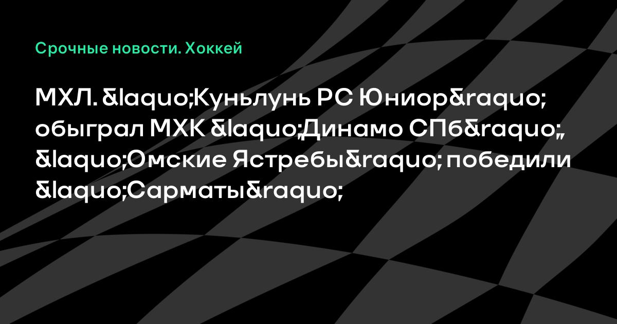 МХЛ. «Куньлунь РС Юниор» обыграл МХК «Динамо СПб», «Омские Ястребы» победили «Сарматы»
