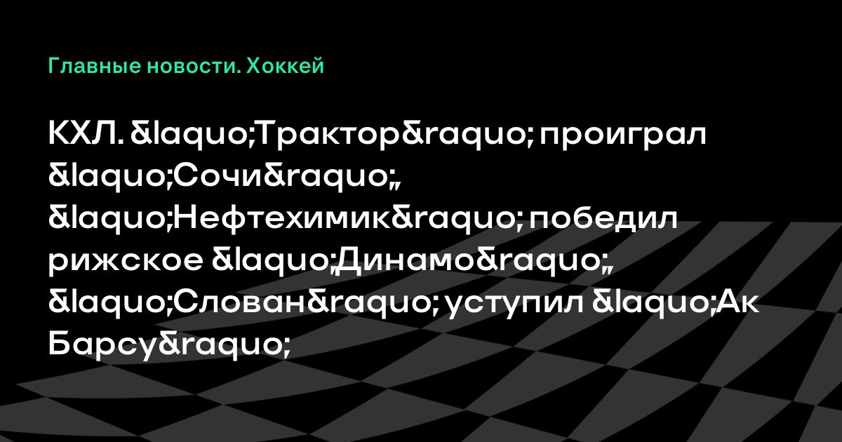КХЛ. «Трактор» проиграл «Сочи», «Нефтехимик» победил рижское «Динамо», «Слован» уступил «Ак Барсу»