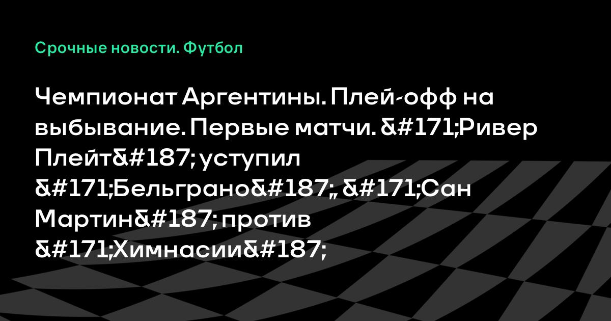 Чемпионат Аргентины. Плей-офф на выбывание. Первые матчи. «Ривер Плейт» уступил «Бельграно», «Сан Мартин» против «Химнасии»