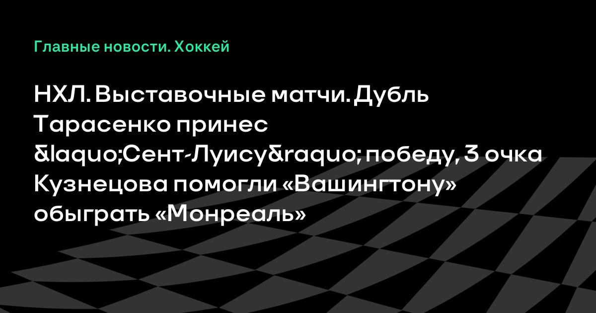 НХЛ. Выставочные матчи. Дубль Тарасенко принес «Сент-Луису» победу, 3 очка Кузнецова помогли «Вашингтону» обыграть «Монреаль»