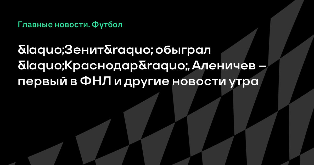 «Зенит» обыграл «Краснодар», Аленичев – первый в ФНЛ и другие новости утра