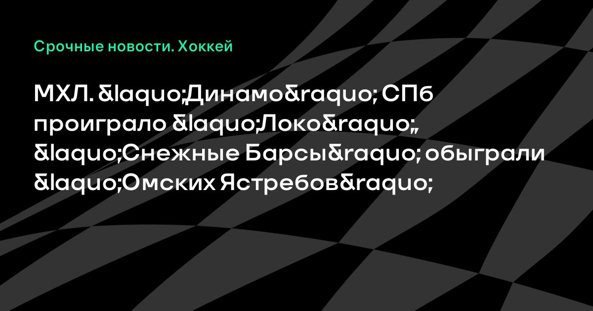 МХЛ. «Динамо» СПб проиграло «Локо», «Снежные Барсы» обыграли «Омских Ястребов»