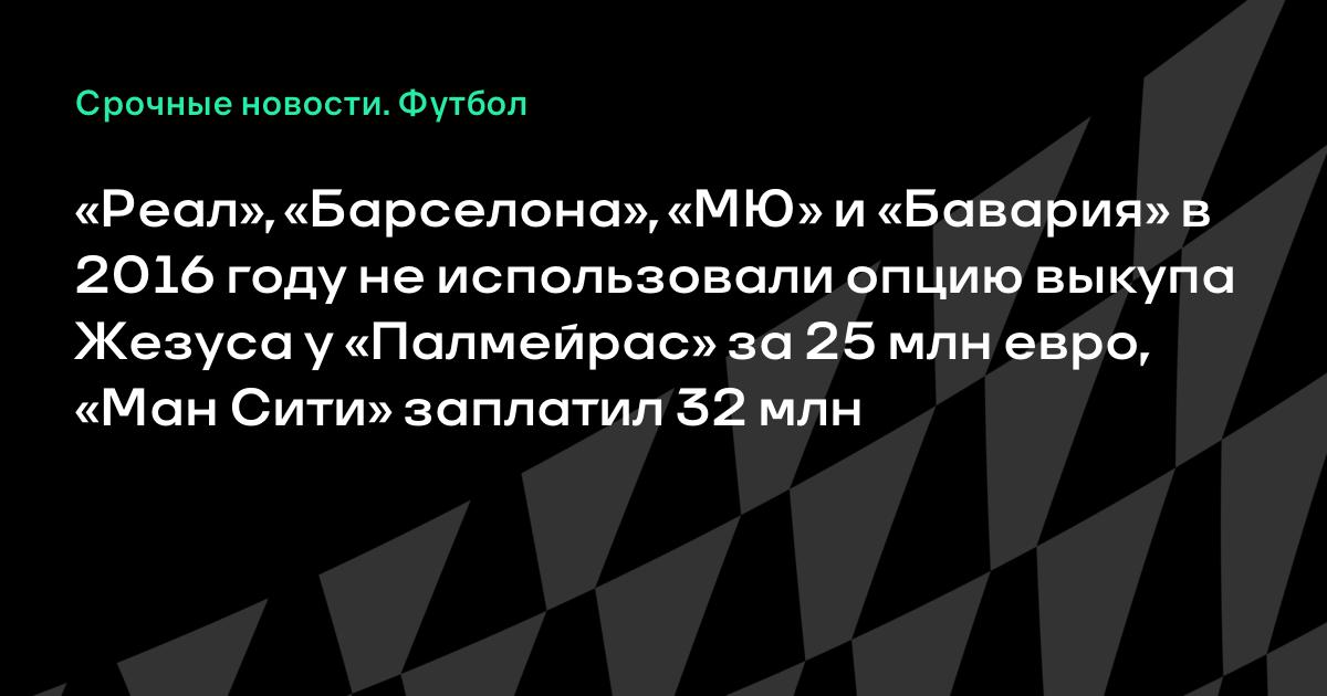 «Реал», «Барселона», «МЮ» и «Бавария» в 2016 году не использовали опцию выкупа Жезуса у «Палмейрас» за 25 млн евро, «Ман Сити» заплатил 32 млн